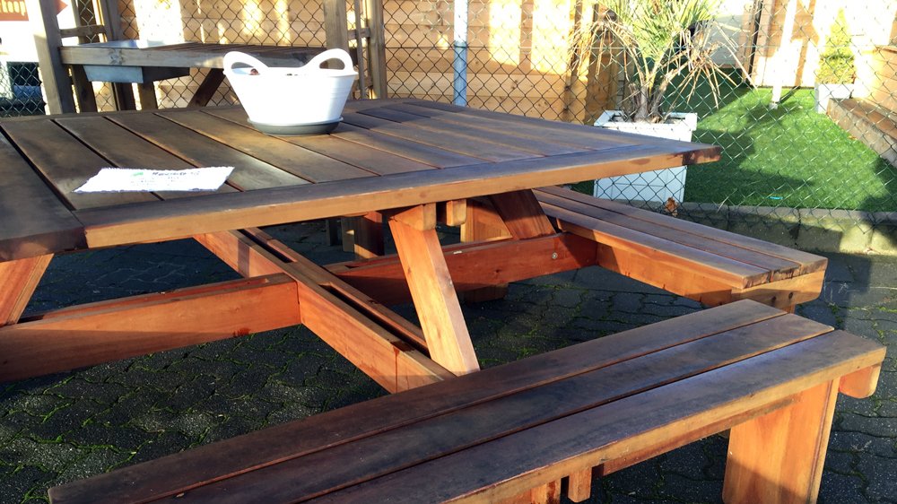 De bankjes zijn in 4 delen opgedeeld en kunnen per deel 2 personen zitplek bieden. Kortom een prima stevige en duurzame picknicktafel wanneer je een groot gezin of vaak mensen over de vloer heeft.